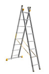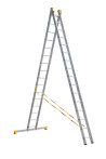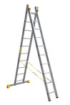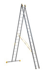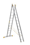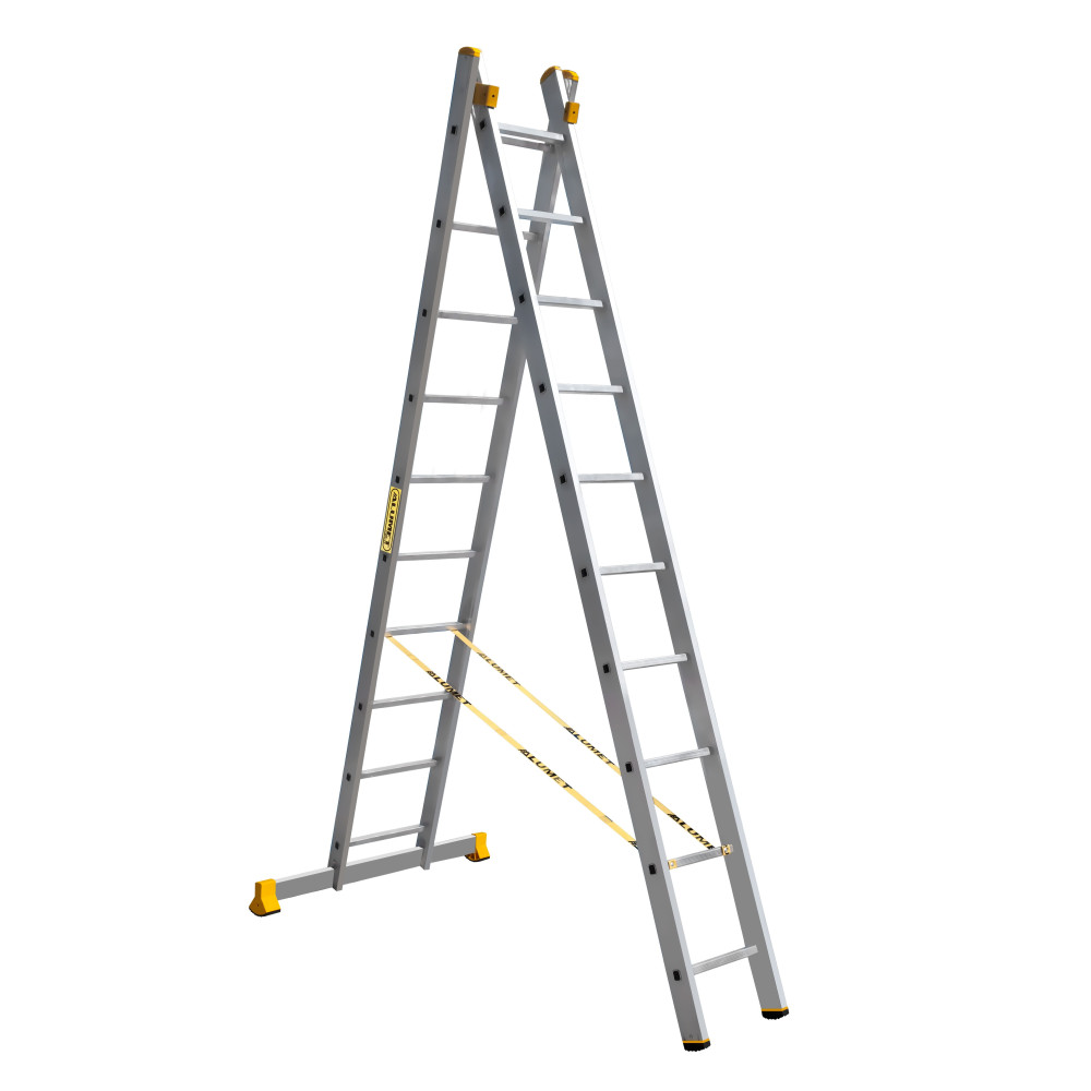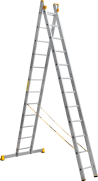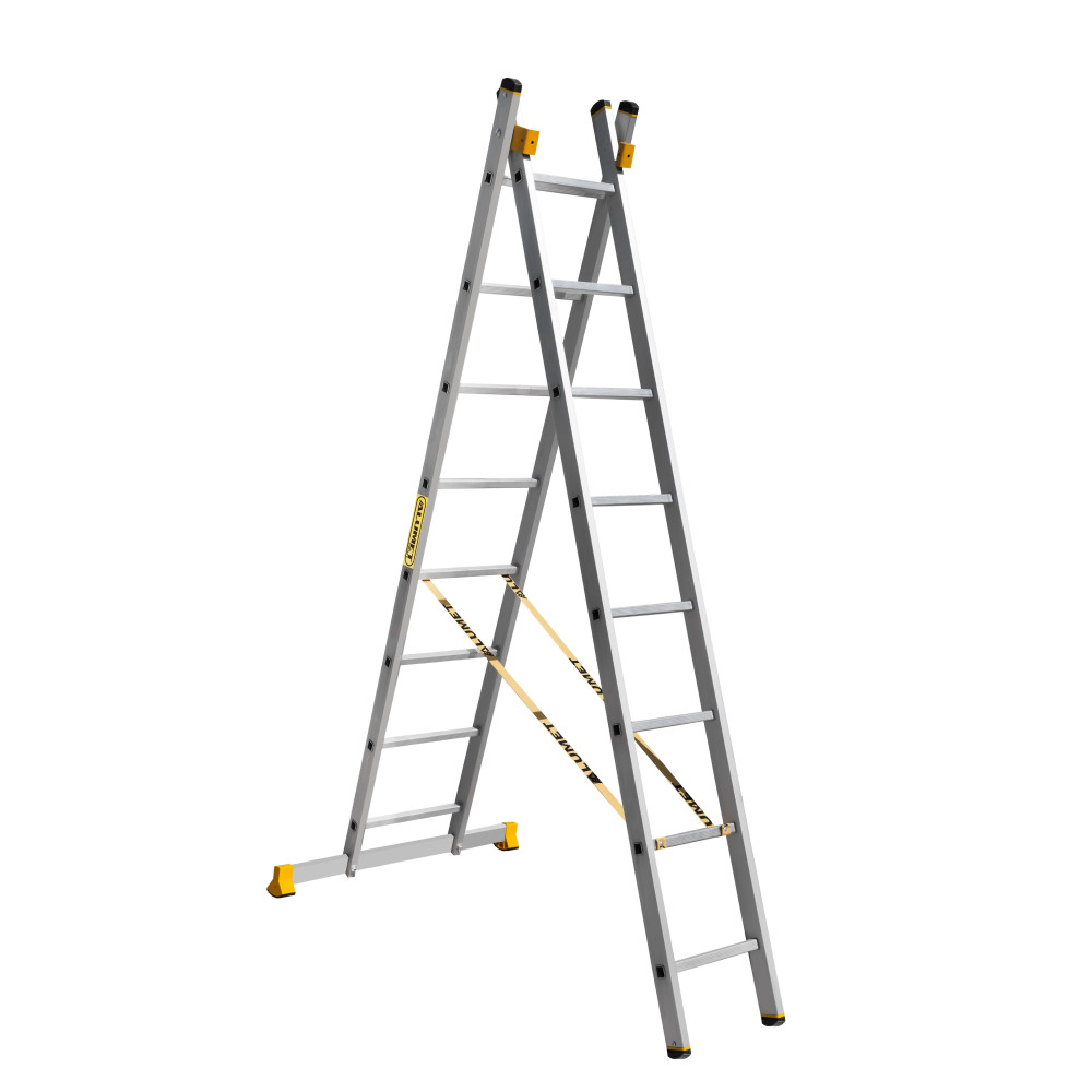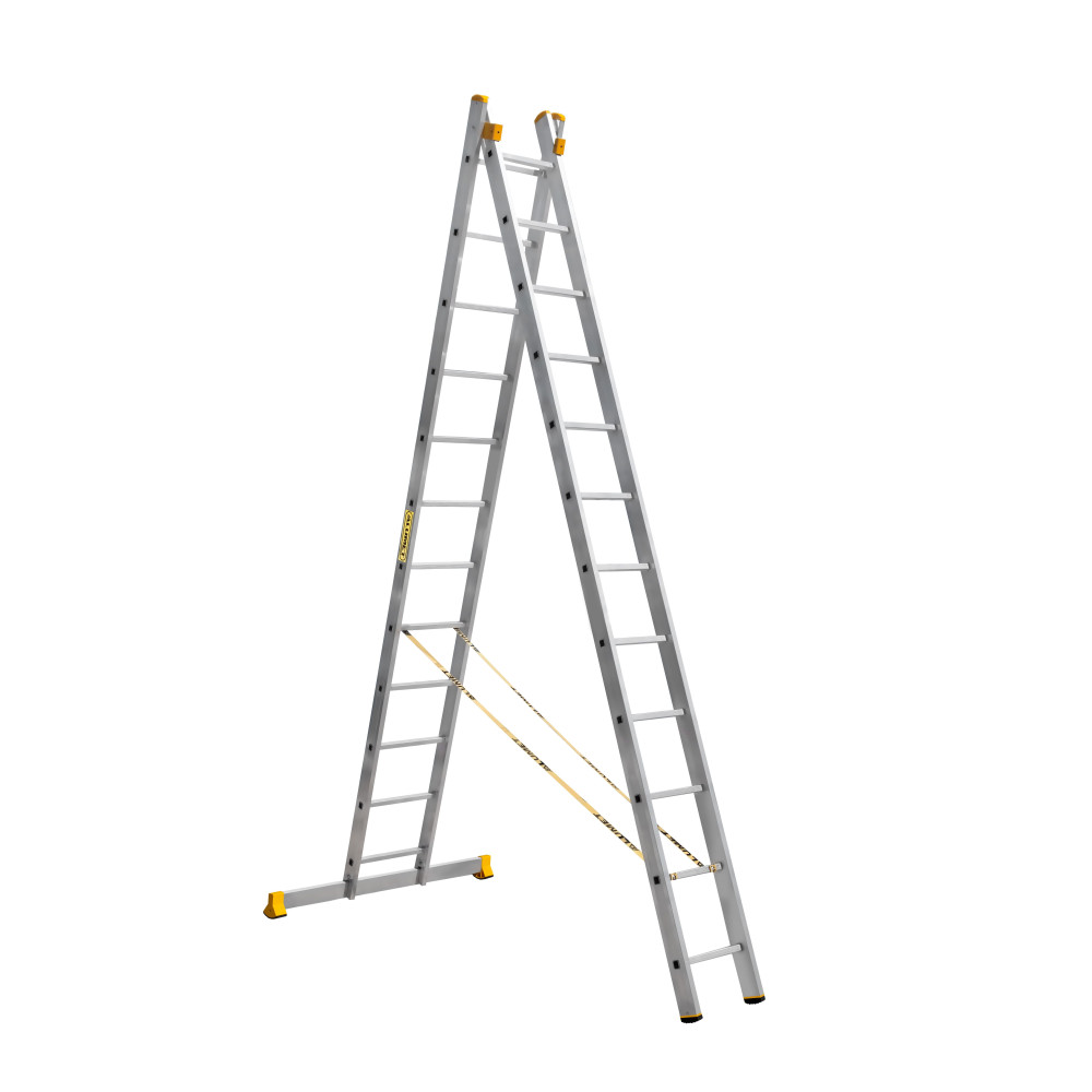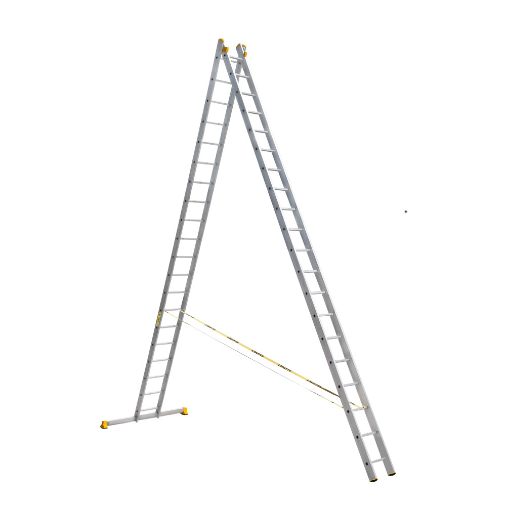 The reliability of an extension ladder is ensured by an overlap of the sections, which makes it structurally more complicated, heavier and therefore more expensive compared to a single section ladder. Safety ropes keep the ladder from ‘sprawling’ in the ‘twin step ladder’ configuration. They also provide the required overlap in the ‘extension ladder’ configuration. It is a conjoint design, so it is impossible to use each of the two ladder elements separately.