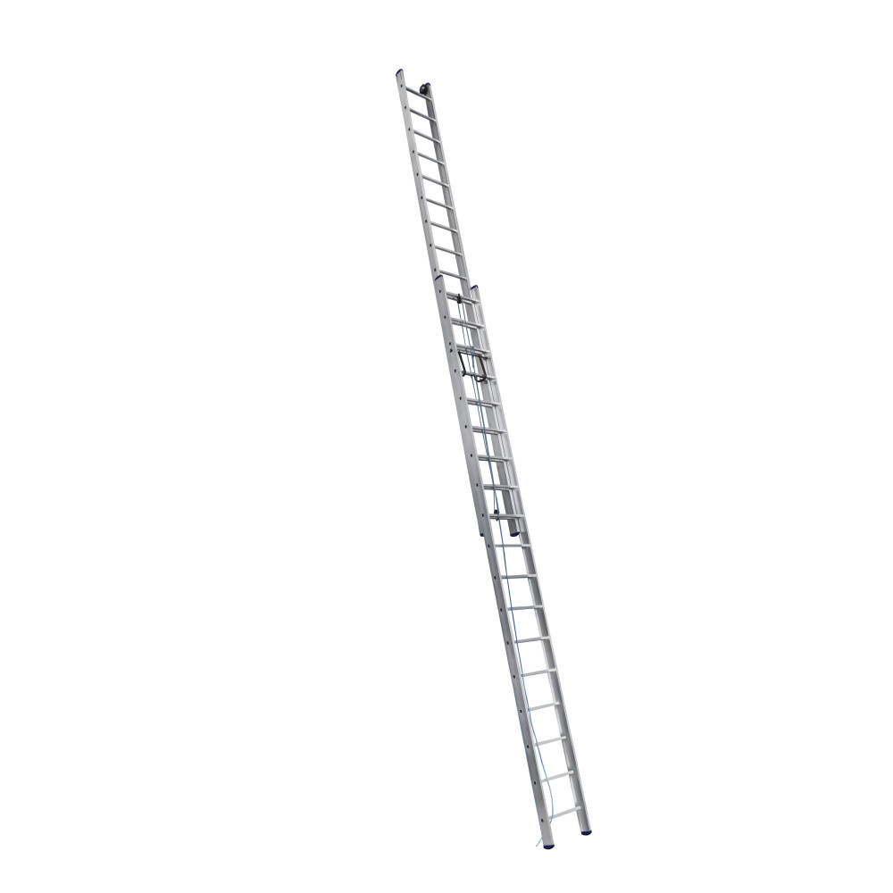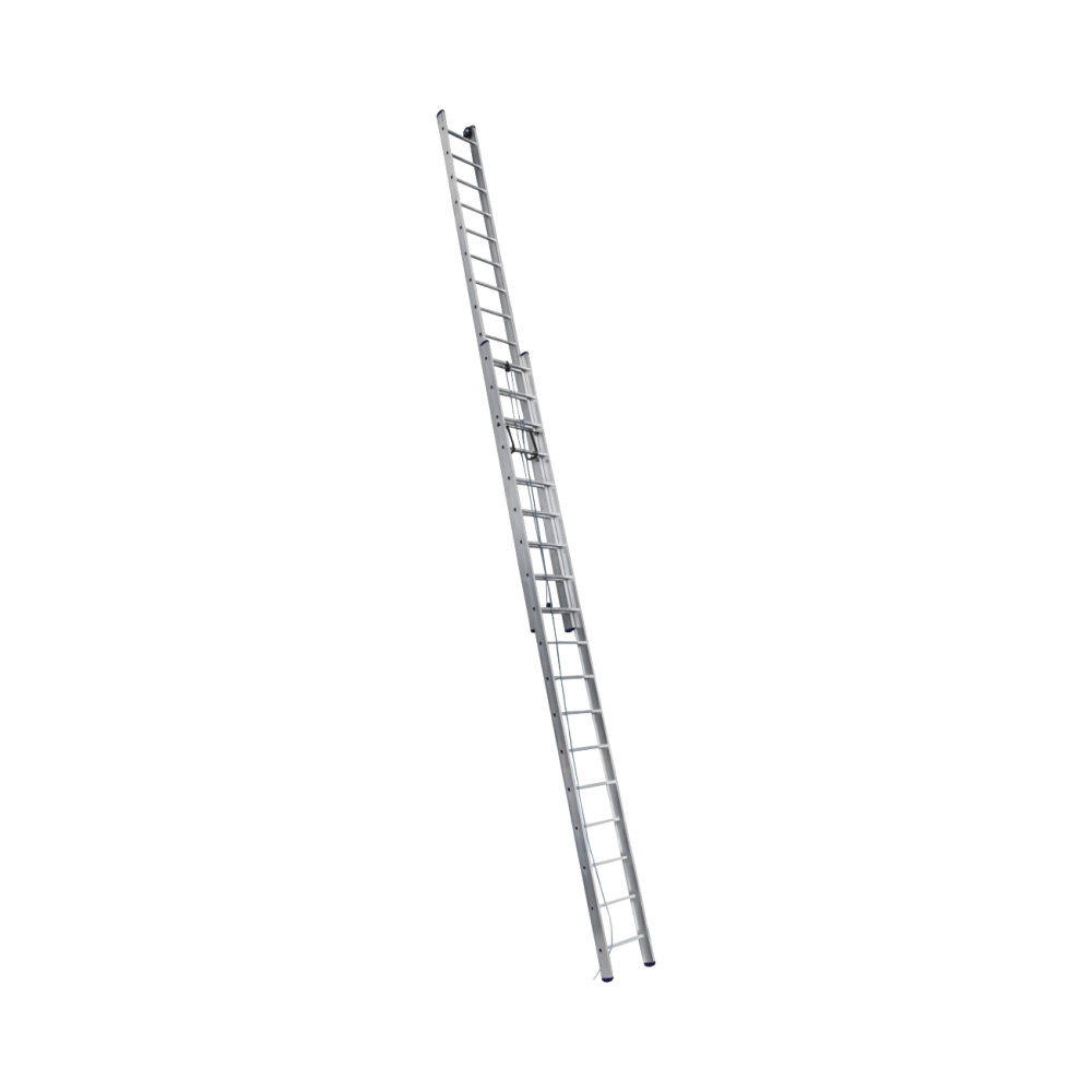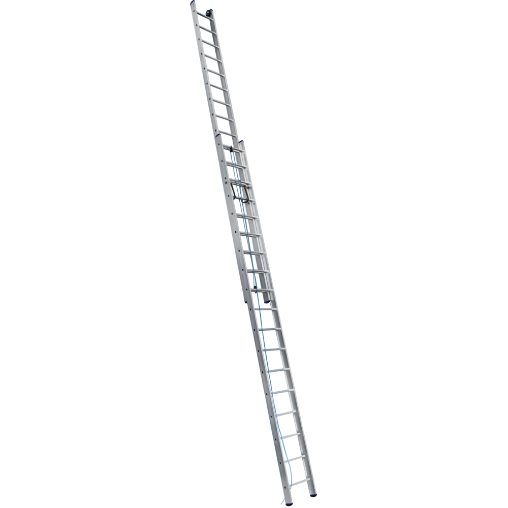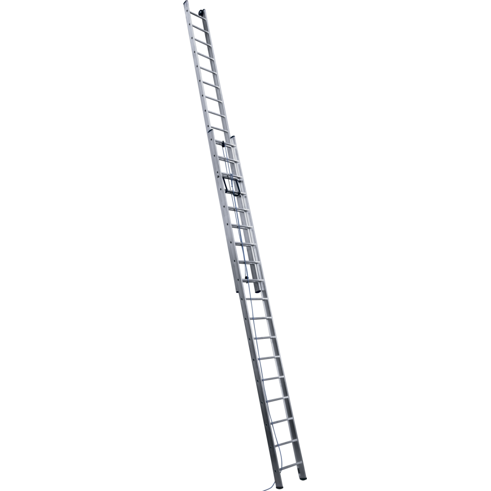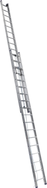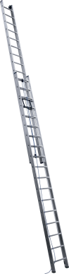The ladder in the transport position is placed against the wall and with the help of the ladder rope, the pulley is extended out and fixed at the desired height. The movement of the upper section against the wall is carried out with the help of wheels.