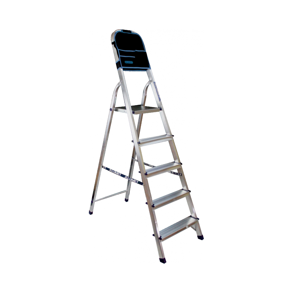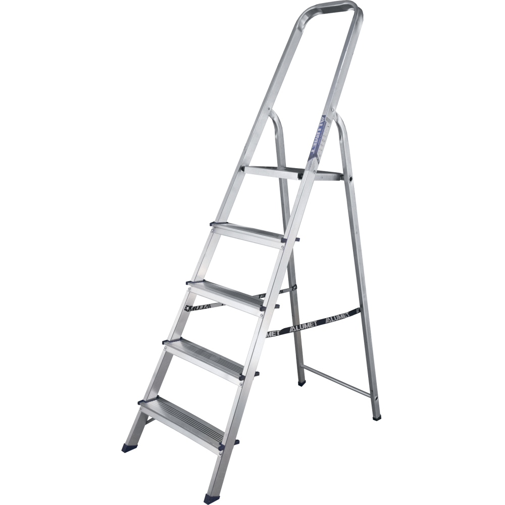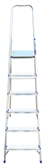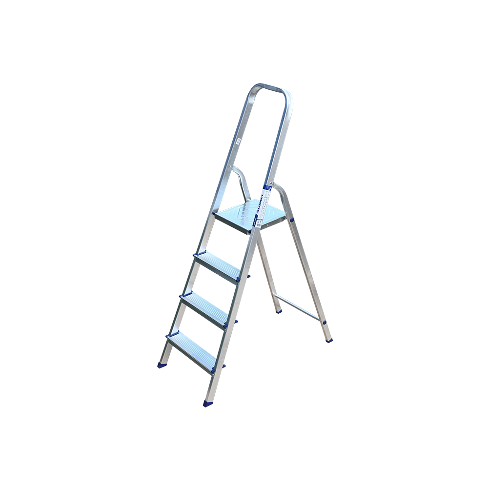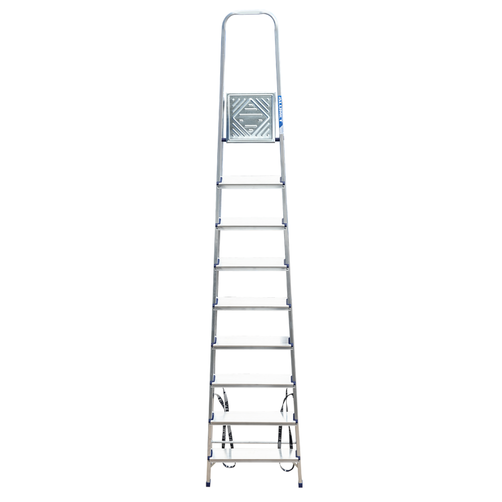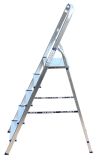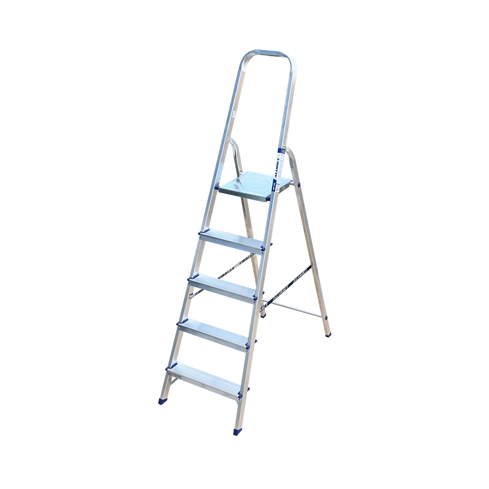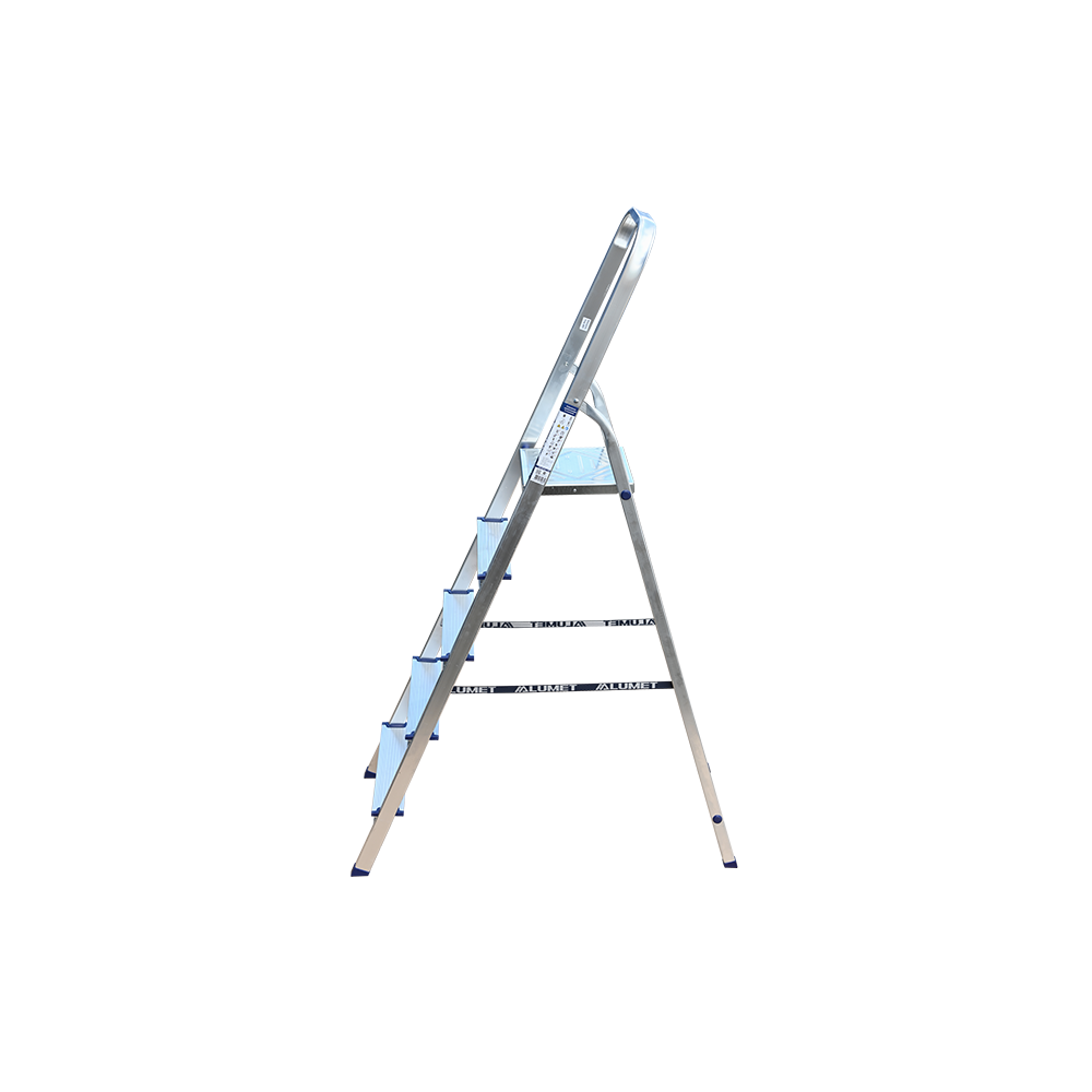 The aluminum step ladder is made of high-strength aluminum shape. The back and front legs are interconnected. The work platform is made of galvanized steel. The rungs have a serrated surface. The shoes are made of high strength plastic. The step ladder in the working position is secured by the work platform; and for step ladders with five rungs and higher – by safety ropes. The number of rungs – from 3 to 10. AM series aluminum step ladder is designed for various types of domestic and industrial work at a height of up to 4 m.