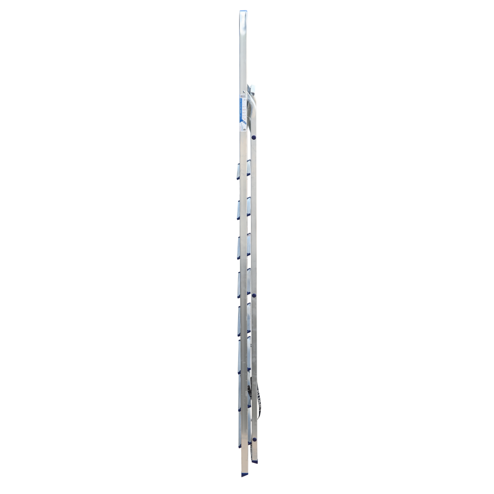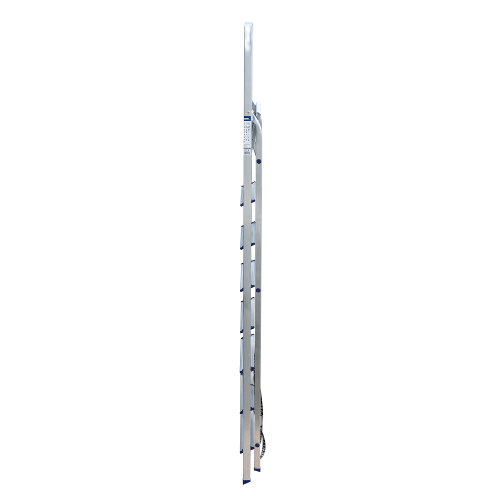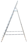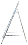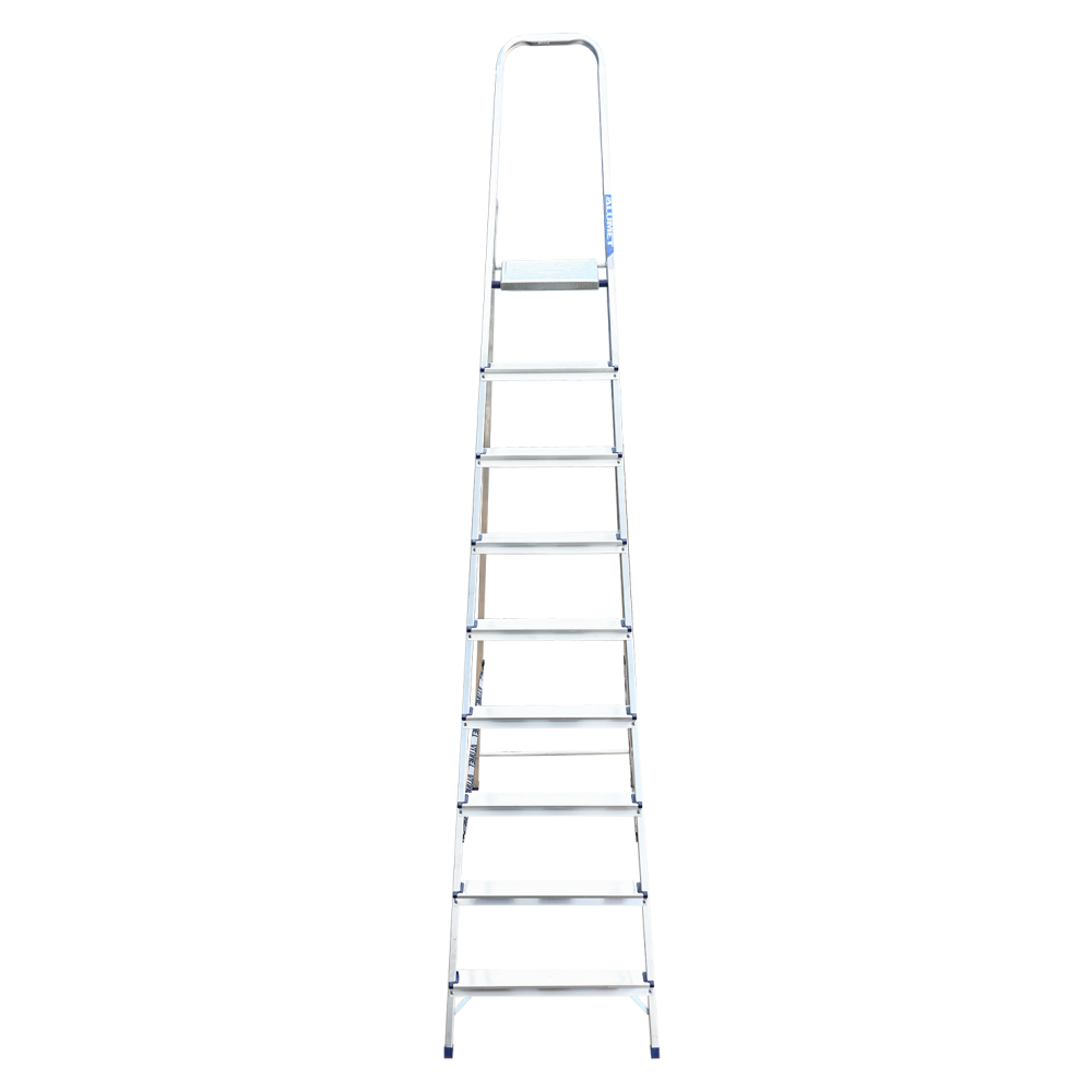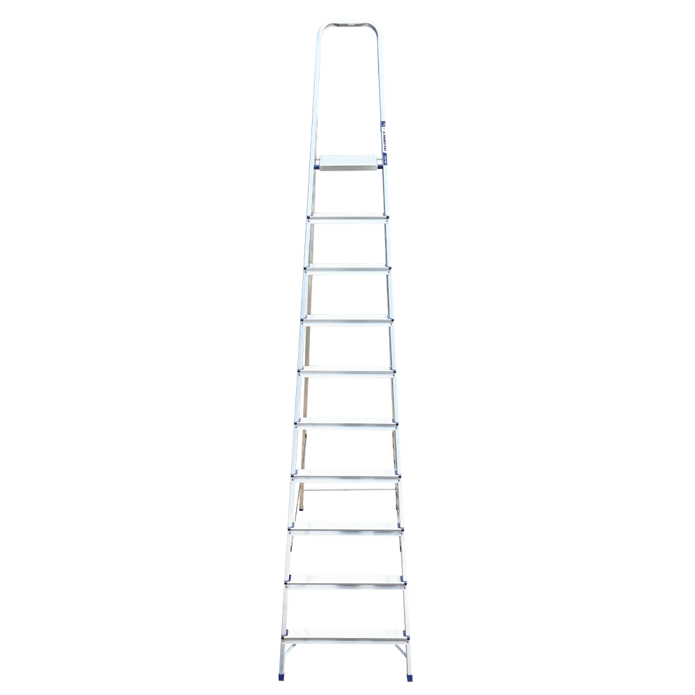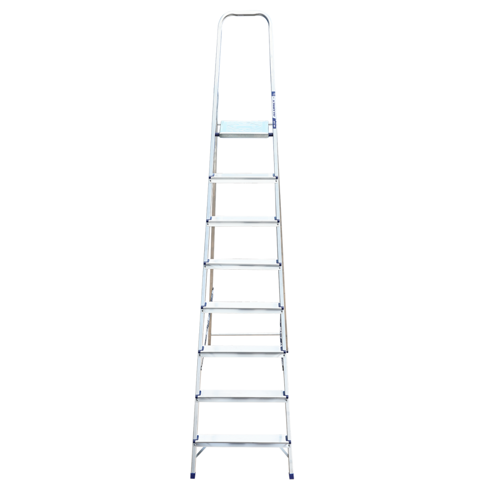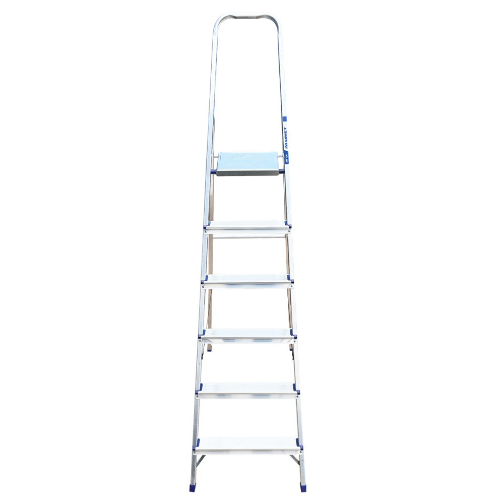 The aluminum step ladder is made of high-strength aluminum shape. The back and front legs are interconnected. The work platform is made of galvanized steel. The rungs have a serrated surface. The shoes are made of high strength plastic. The step ladder in the working position is secured by the work platform; and for step ladders with five rungs and higher – by safety ropes. The number of rungs – from 3 to 10. AM series aluminum step ladder is designed for various types of domestic and industrial work at a height of up to 4 m.