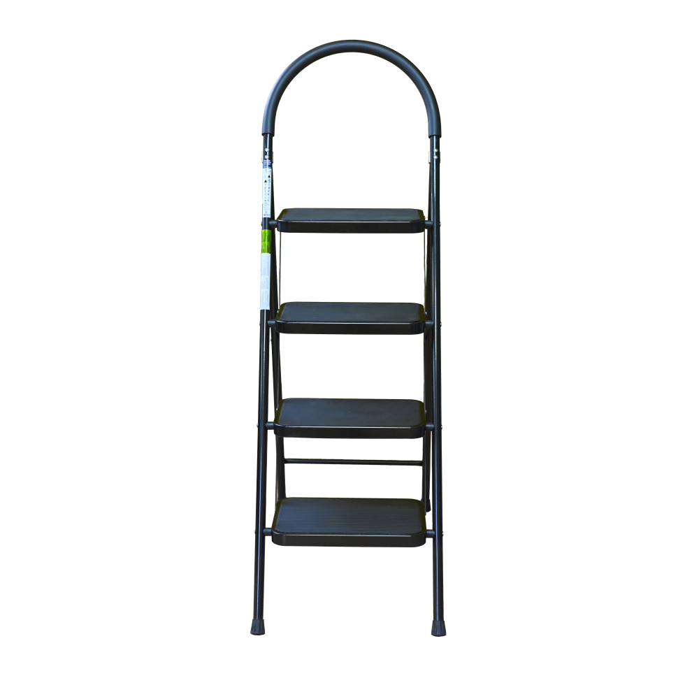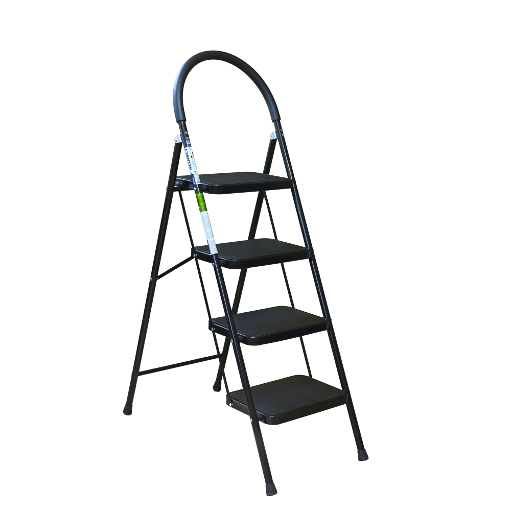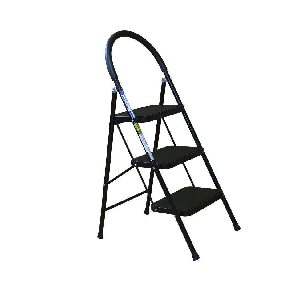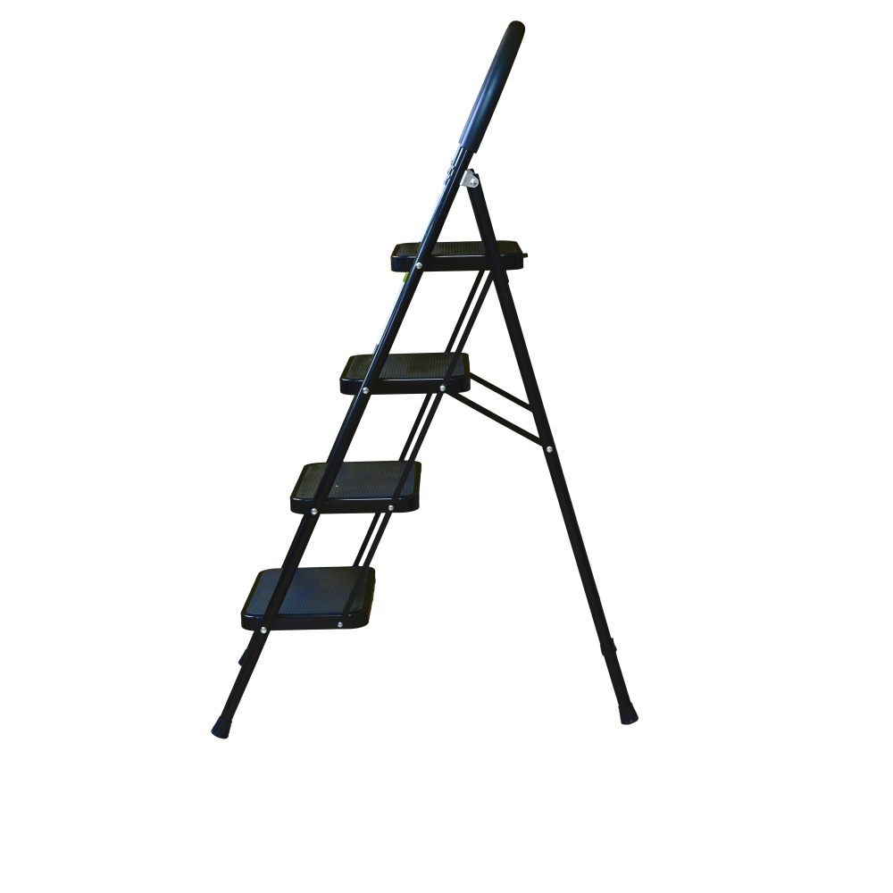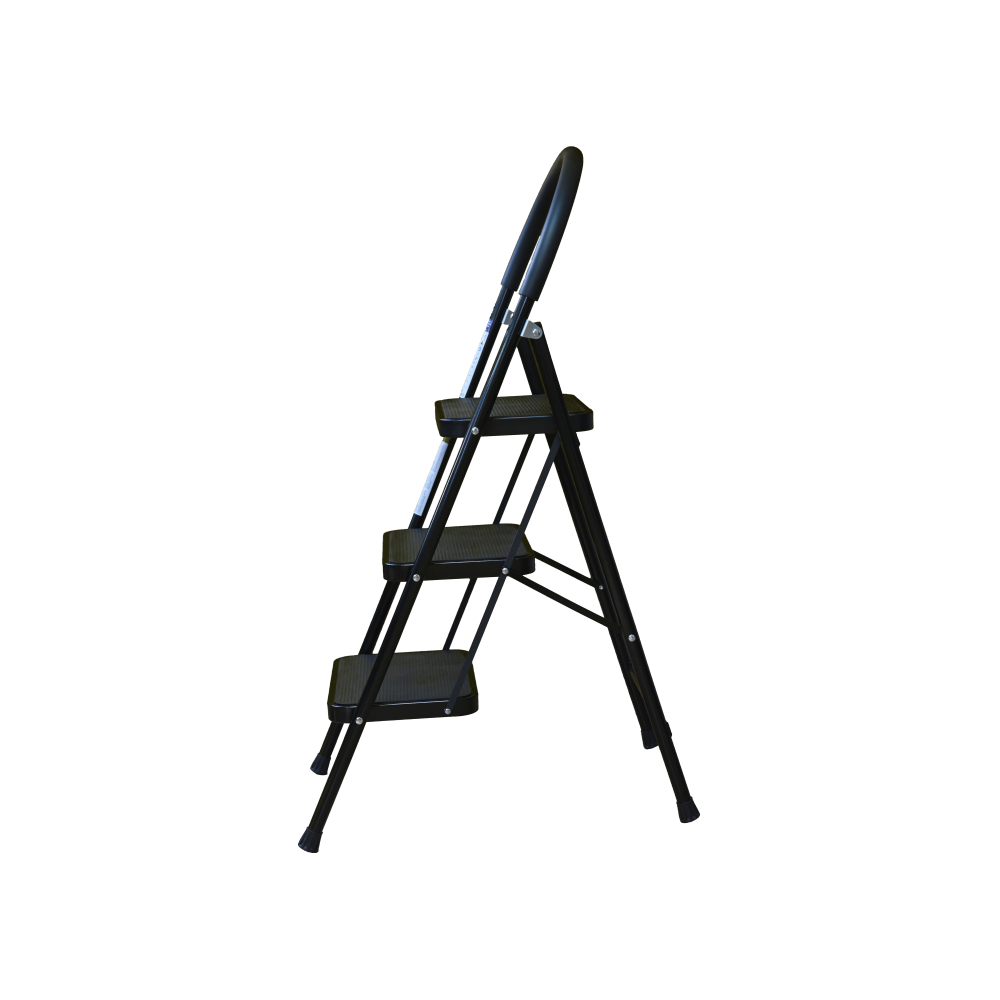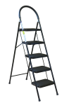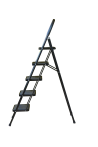 The bowstring of the front leg, hind leg and steps are made of steel profile protected from corrosion with powder paint. Back and front legs are connected by planks. Steps with plastic inserts the whole area, with corrugation. The shoes are made of high-strength plastic. The step-ladder in the working position must be fully open, the upper the step should lie snugly on the tube of the back leg.