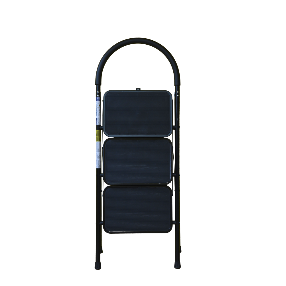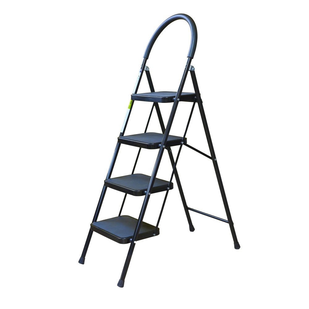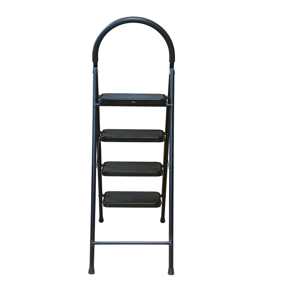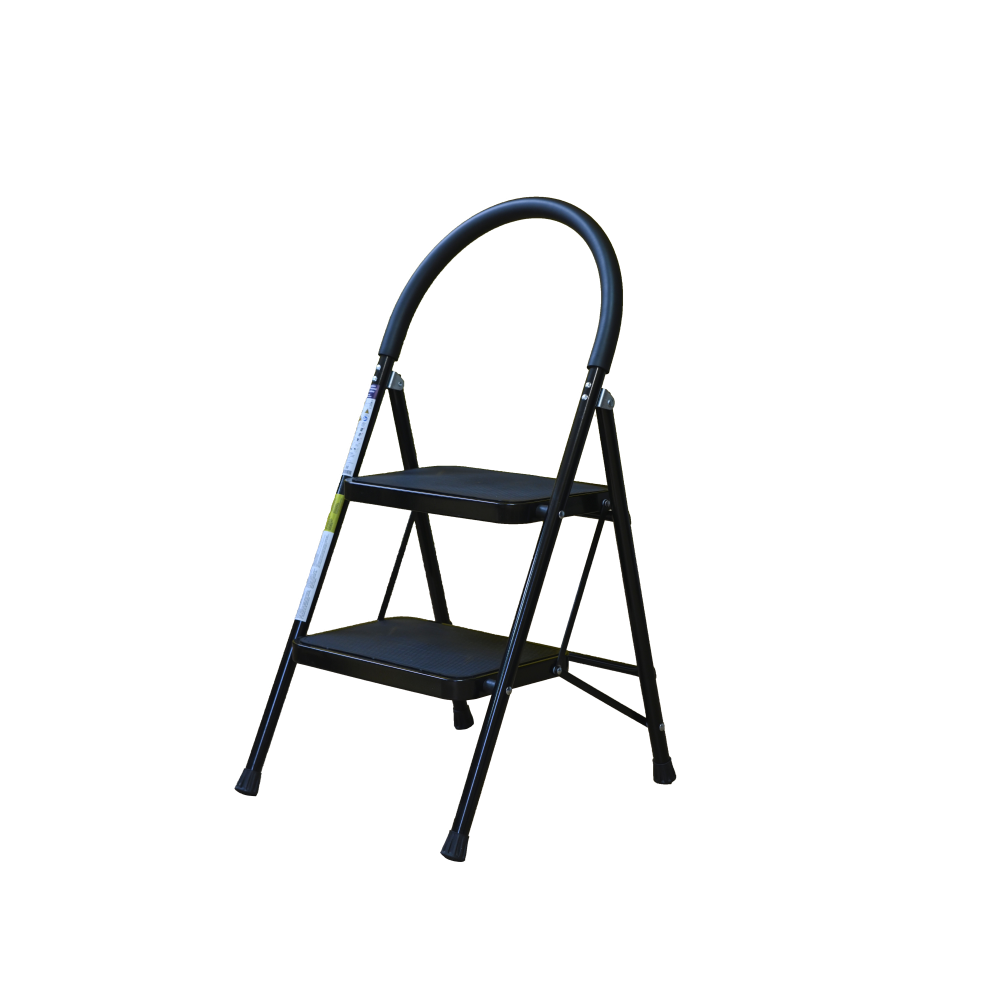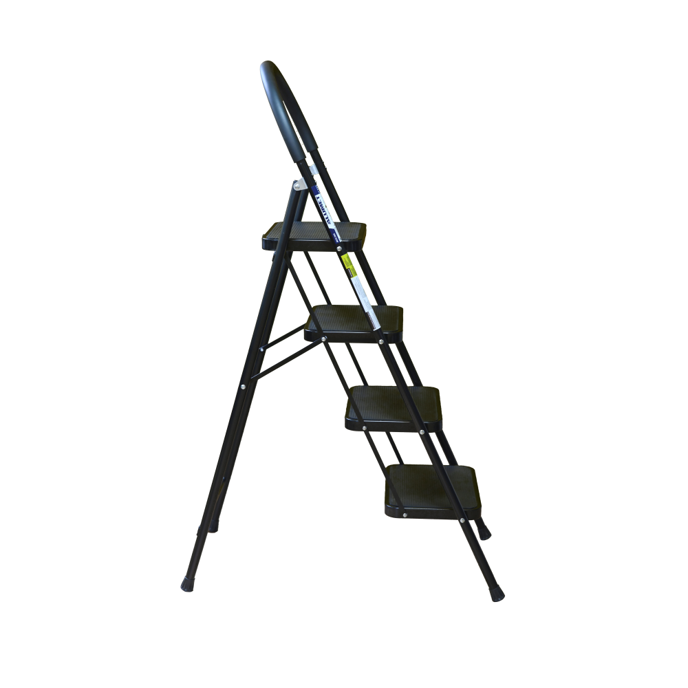 The bowstring of the front leg, hind leg and steps are made of steel profile protected from corrosion with powder paint. Back and front legs are connected by planks. Steps with plastic inserts the whole area, with corrugation. The shoes are made of high-strength plastic. The step-ladder in the working position must be fully open, the upper the step should lie snugly on the tube of the back leg.
