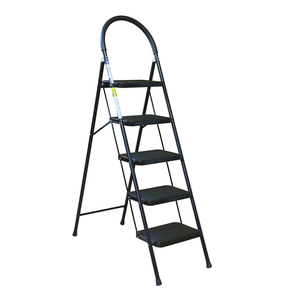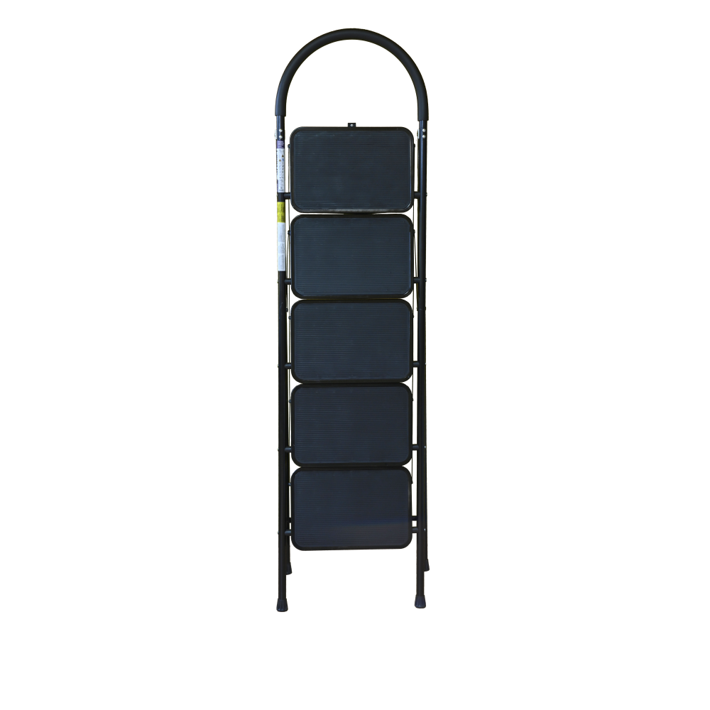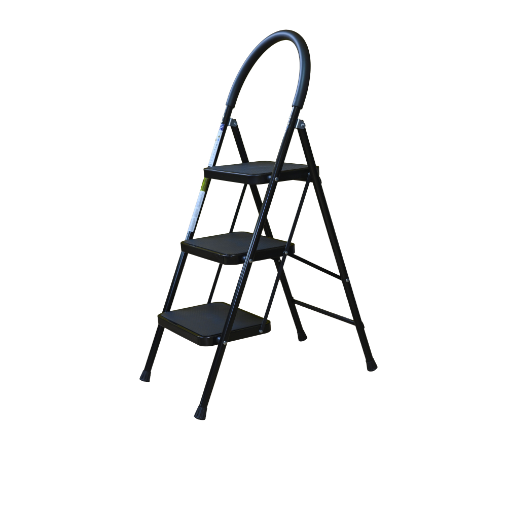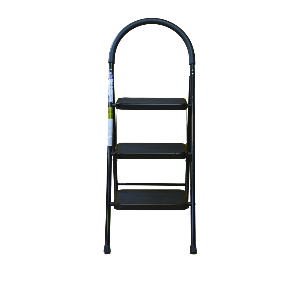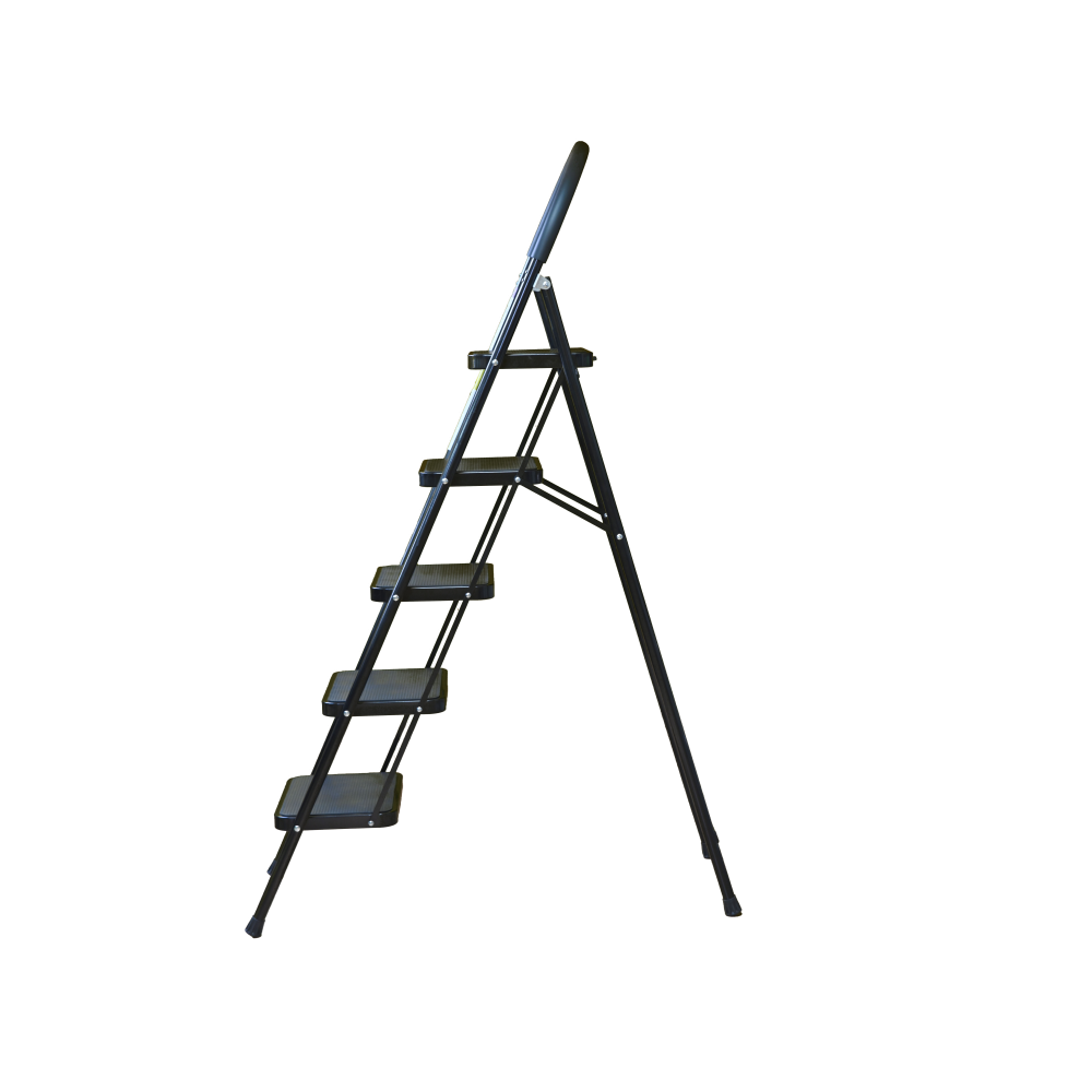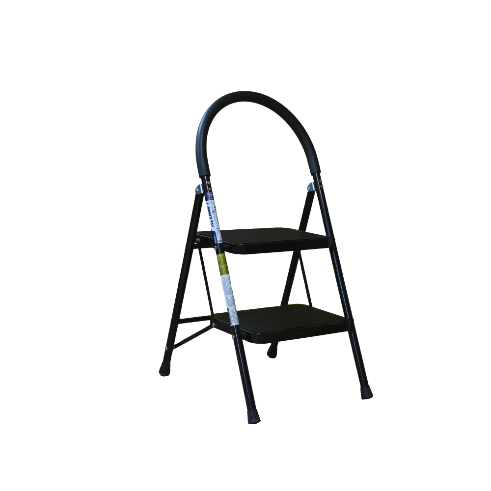 The bowstring of the front leg, hind leg and steps are made of steel profile protected from corrosion with powder paint. Back and front legs are connected by planks. Steps with plastic inserts the whole area, with corrugation. The shoes are made of high-strength plastic. The step-ladder in the working position must be fully open, the upper the step should lie snugly on the tube of the back leg.