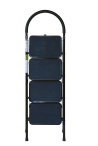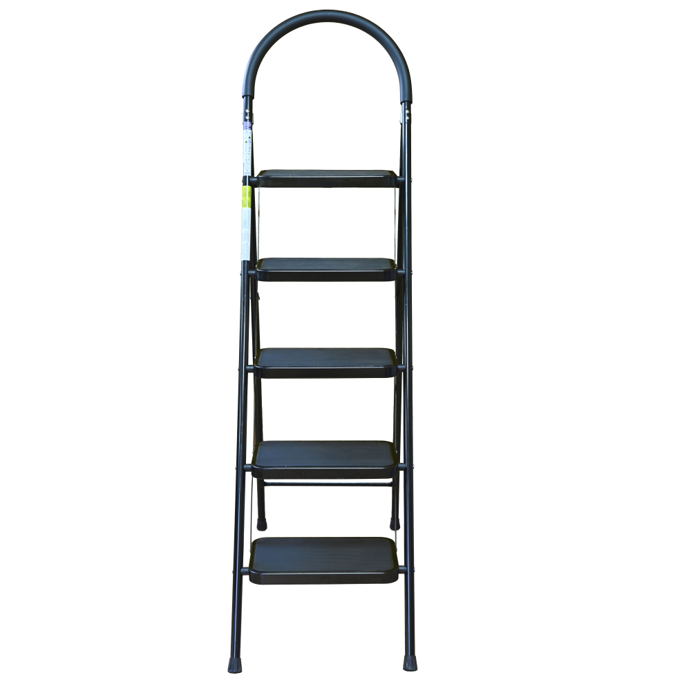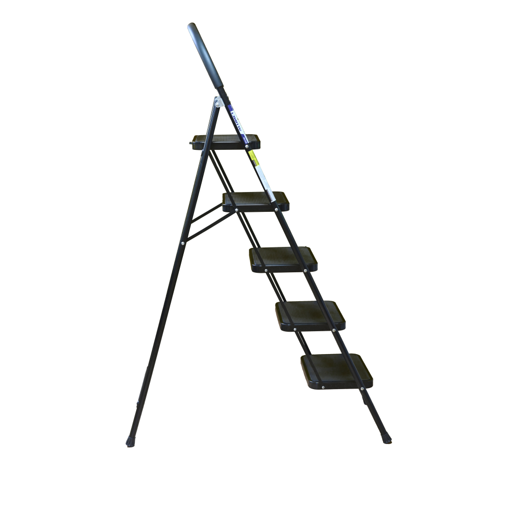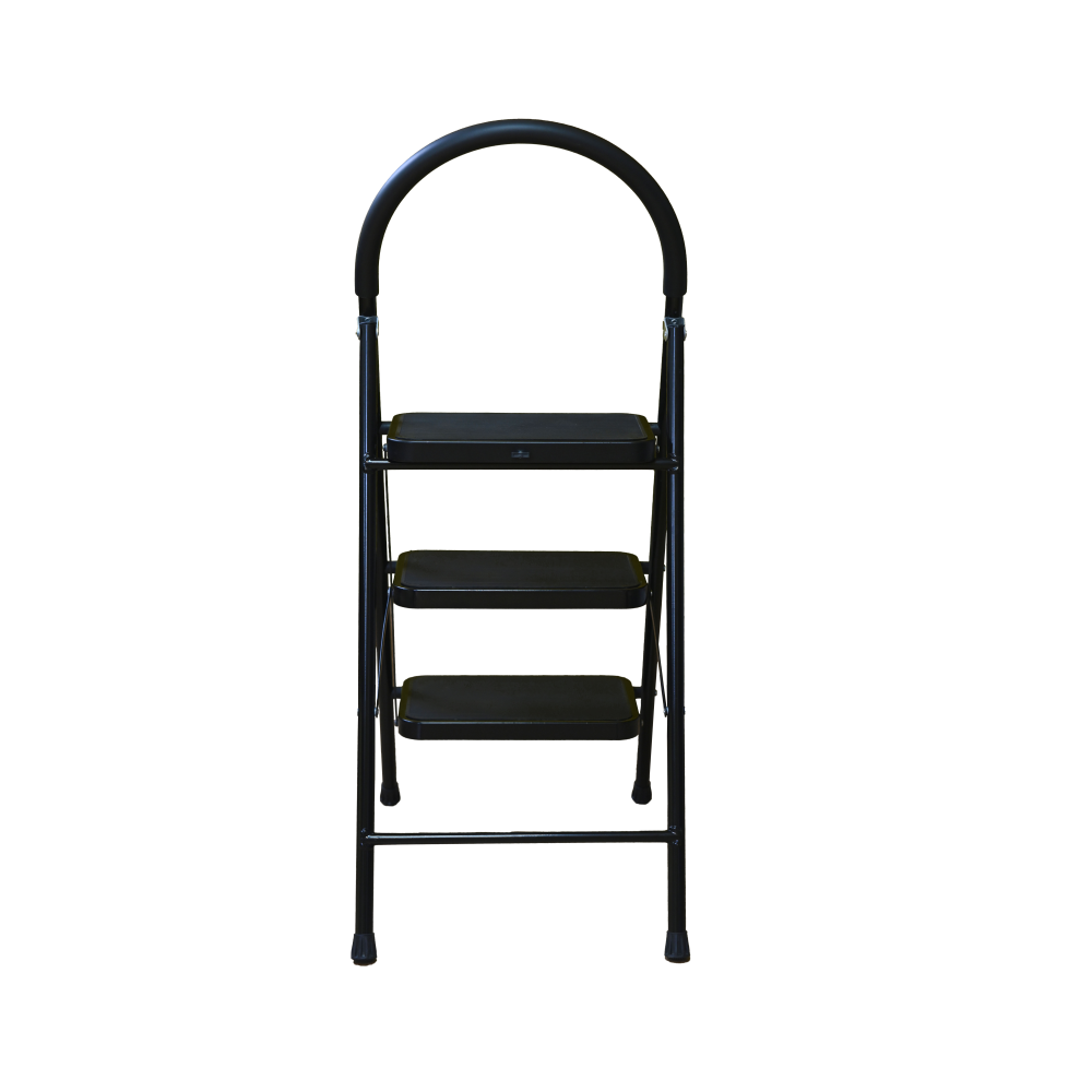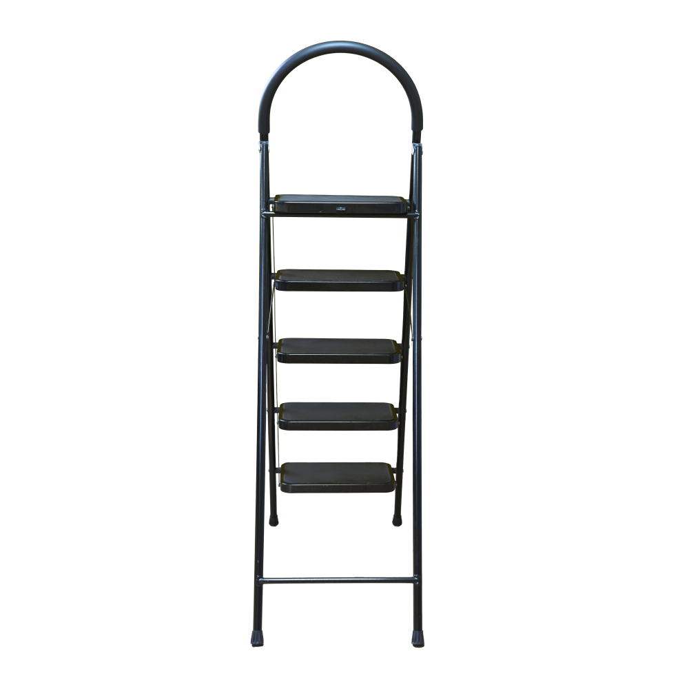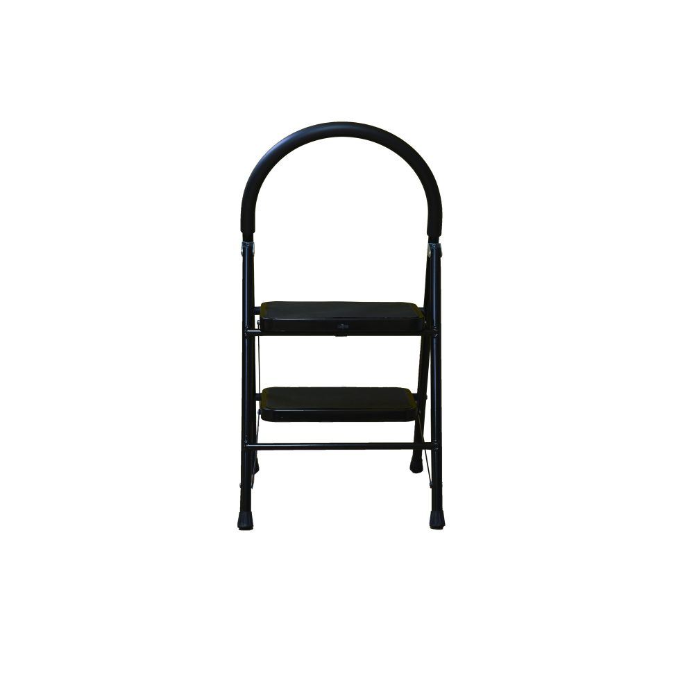 The bowstring of the front leg, hind leg and steps are made of steel profile protected from corrosion with powder paint. Back and front legs are connected by planks. Steps with plastic inserts the whole area, with corrugation. The shoes are made of high-strength plastic. The step-ladder in the working position must be fully open, the upper the step should lie snugly on the tube of the back leg.