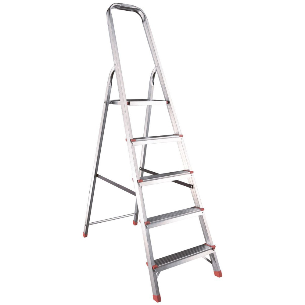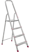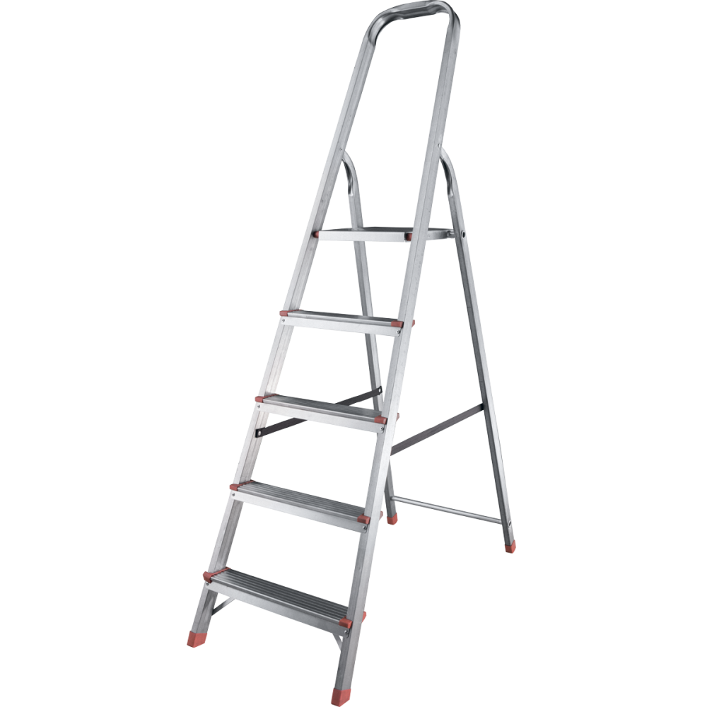 The strings, rungs and working platform of the step ladder are made of galvanized steel. The step ladder is protected against corrosion in the natural environment for decades. The back and front legs are interconnected. The work platform is made of galvanized steel. The rungs have a serrated surface. The shoes are made of high strength plastic. The step ladder in the working position is secured by the working platform; and for step ladders with five rungs and higher – by safety ropes. The number of rungs – from 3 to 10. ZZ series galvanized steel step ladder is designed for various types of domestic and industrial work at a height of up to 3.3 m.