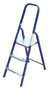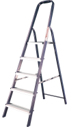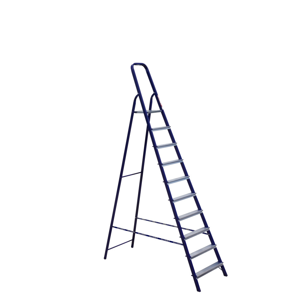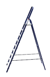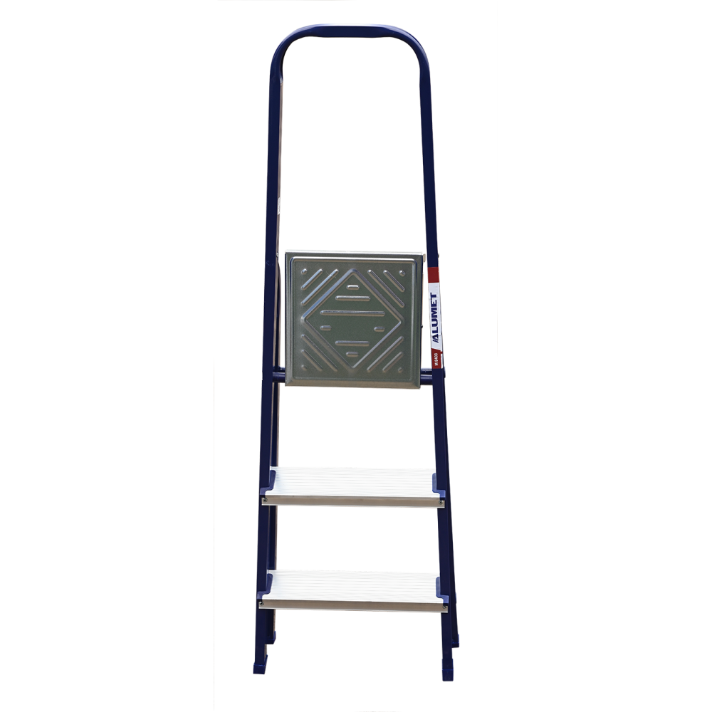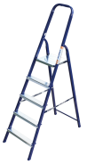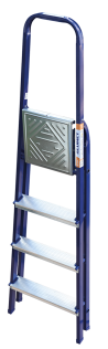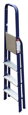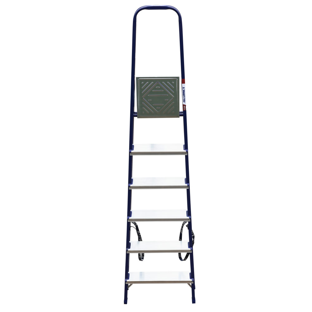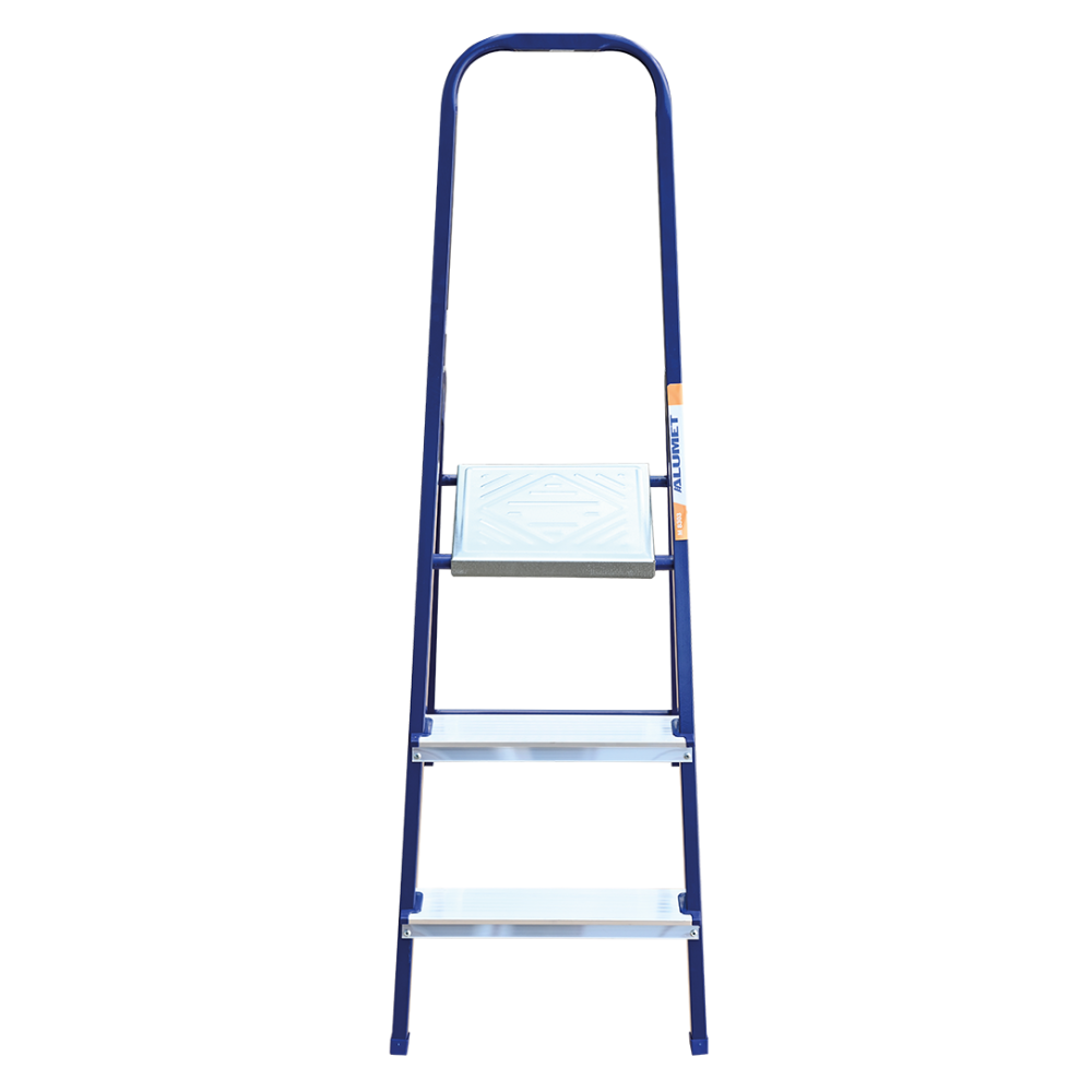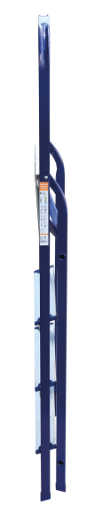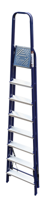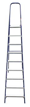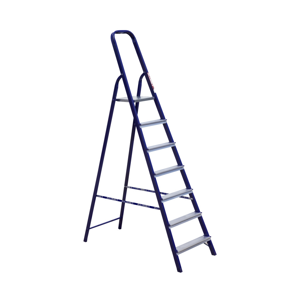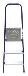 The strings of the step ladder are made of a high-strength steel shape protected against corrosion by epoxy powder enamel. The back and front legs are interconnected. The work platform is made of galvanized steel. The rungs have a serrated surface and are made of a high-strength aluminum shape. The shoes are made of high strength plastic. The step ladder in the working position is secured by the work platform; and for step ladders with five rungs and higher – by safety ropes. The number of rungs – from 3 to 10. M series aluminum step ladder is designed for various types of domestic and industrial work at a height of up to 4 m.