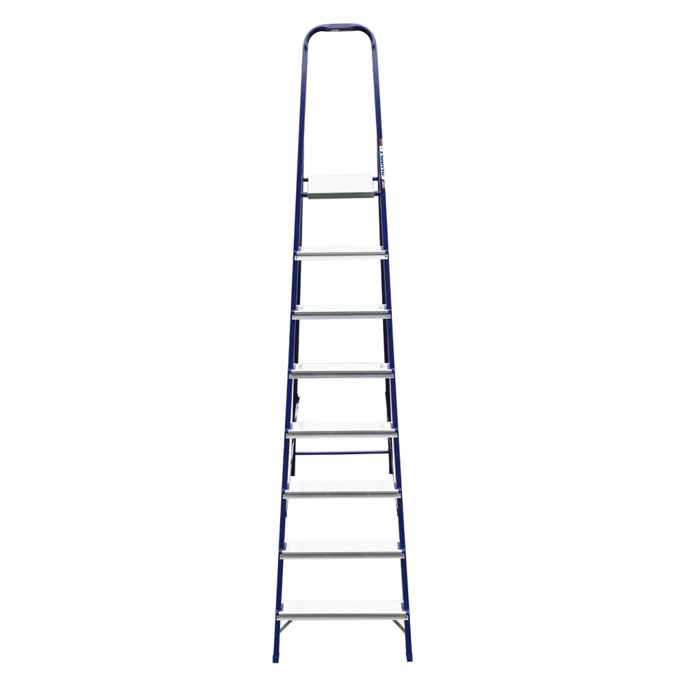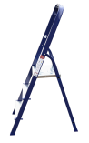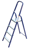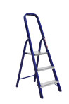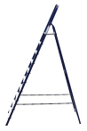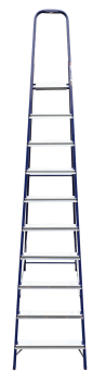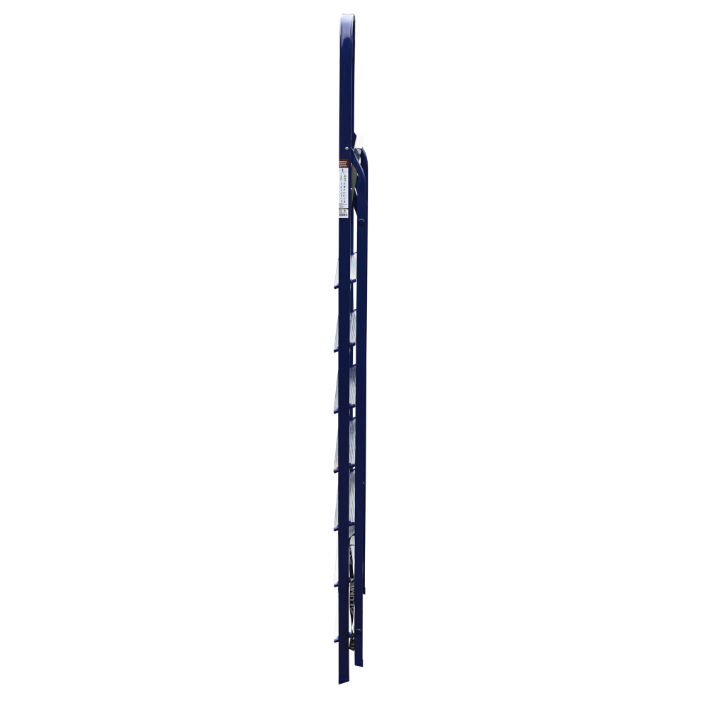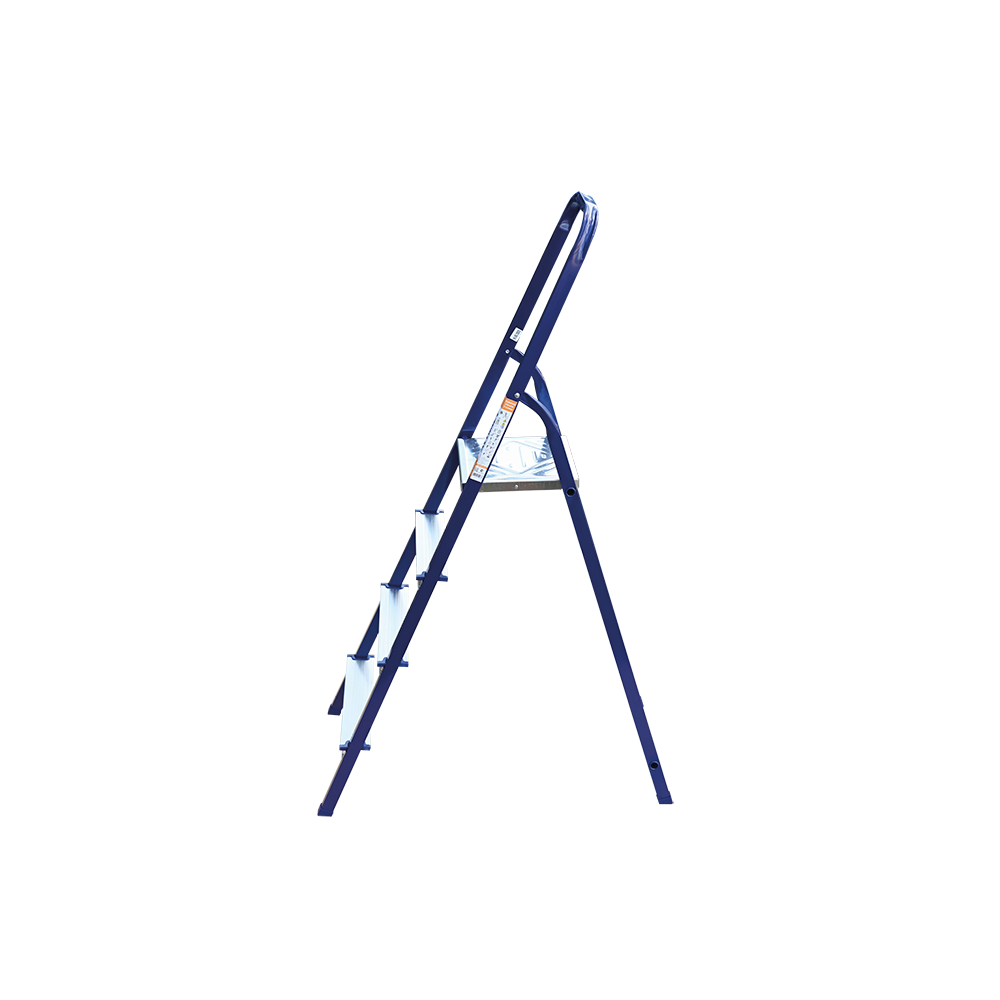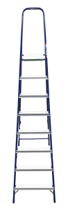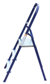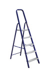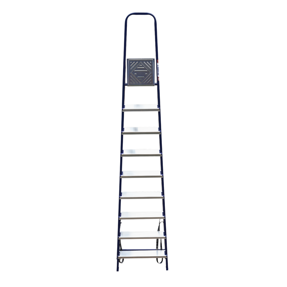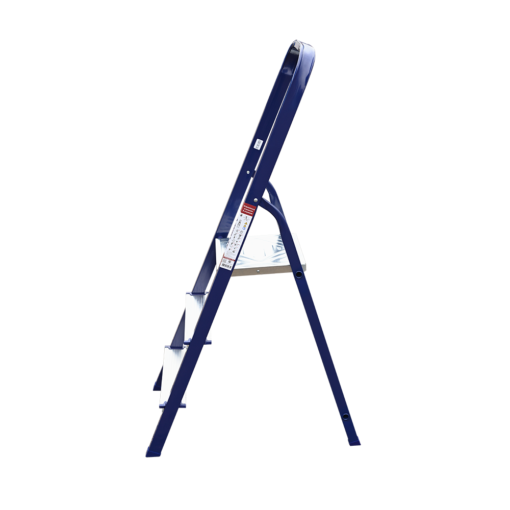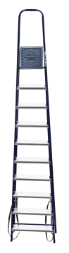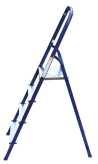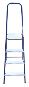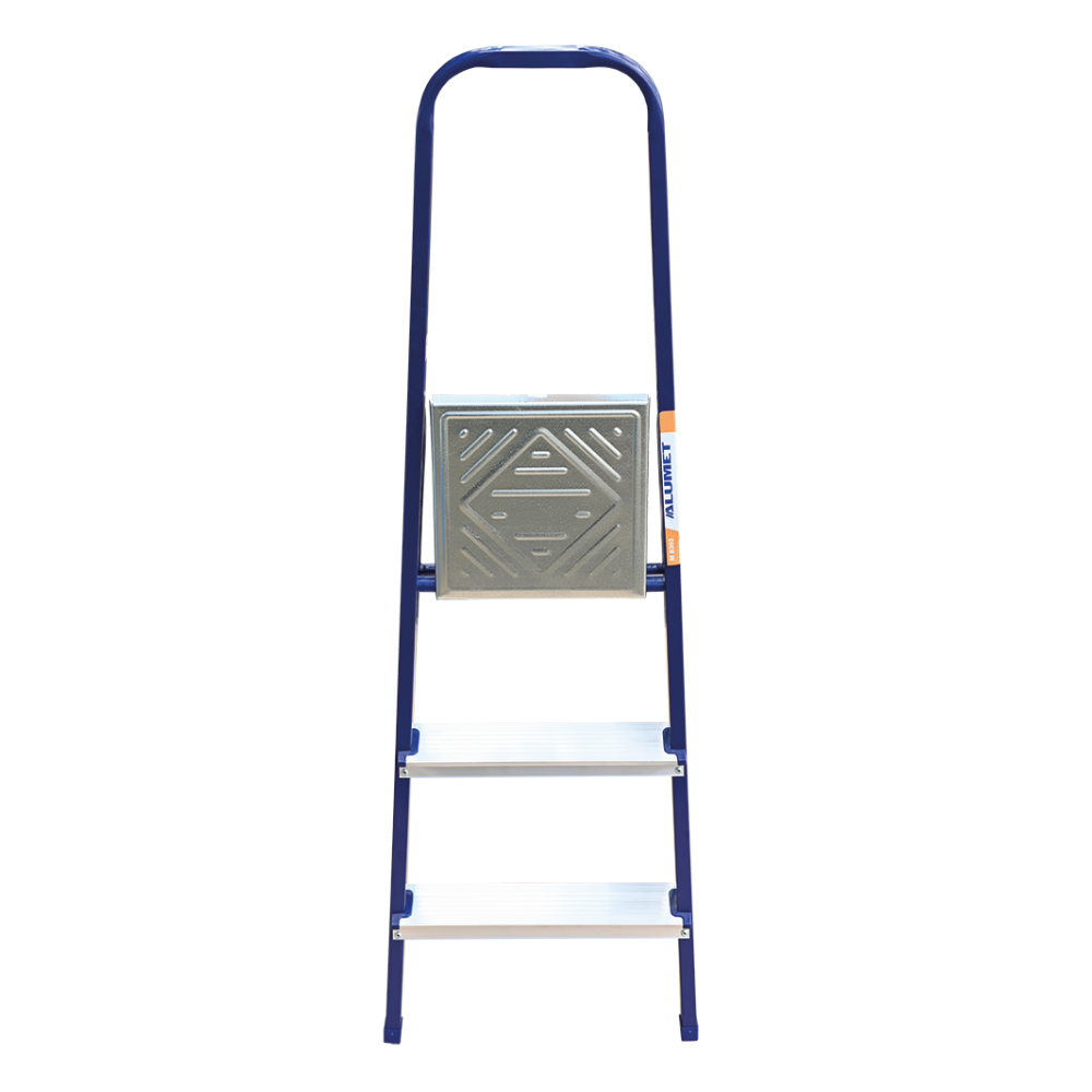 The strings of the step ladder are made of a high-strength steel shape protected against corrosion by epoxy powder enamel. The back and front legs are interconnected. The work platform is made of galvanized steel. The rungs have a serrated surface and are made of a high-strength aluminum shape. The shoes are made of high strength plastic. The step ladder in the working position is secured by the work platform; and for step ladders with five rungs and higher – by safety ropes. The number of rungs – from 3 to 10. M series aluminum step ladder is designed for various types of domestic and industrial work at a height of up to 4 m.
